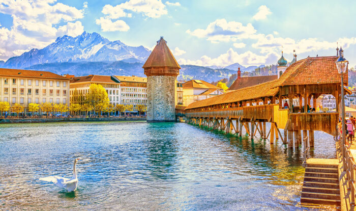 Es un puente de madera ubicado en la encantadora ciudad de Lucerna sobre el río Reuss, conectando la ciudad vieja con la ciudad nueva.