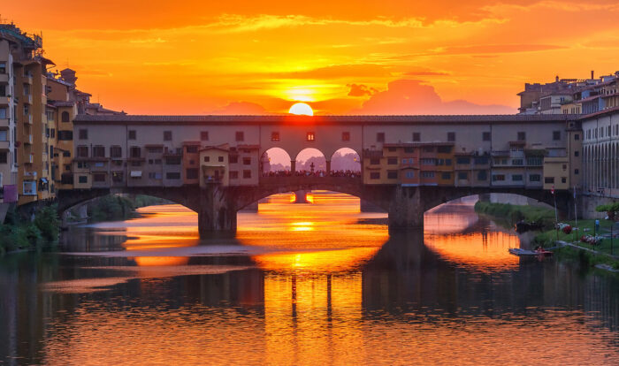 El encanto del Ponte Vecchio es innegable: su simetría arquitectónica, sus tres arcos centrales y sus casas colgantes lo convierten en una fotografía única.